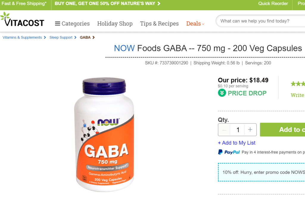 Here’s the link where I order my GABA. I take one in the morning and one in the evening and one in between if I get hit and feel toxic. They also have 500 mg’s. When this was shared with me I was told we can take up to four a day of the 500 mg and 3 a day of the 750. Helps my brain feel better and the MSM seems to do the whole body: https://www.vitacost.com/now-foods-gaba-750-mg-200-veg-capsules