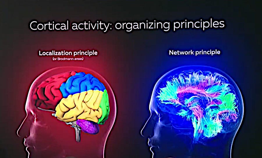 Brain scientists use to think that the brain is organized locally, with zones in the brain that have different functions such as the visual cortex, the auditory cortex, motion cortex. But recently the brain has been found to be much more complicated.
