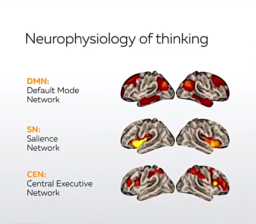 The middle line is the ‘Salience Network’ which is the aspect of the brain that is used for getting its bearings, state of being or situation.