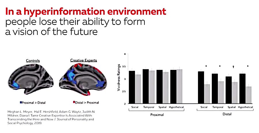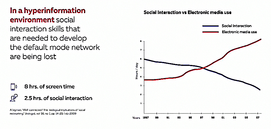 If the ‘Default Mode Network/Systemic Thinking Brain’ in not working due to hyper-information overload, the ability to look into the future is lost. So the person cannot be motivated and create goals.