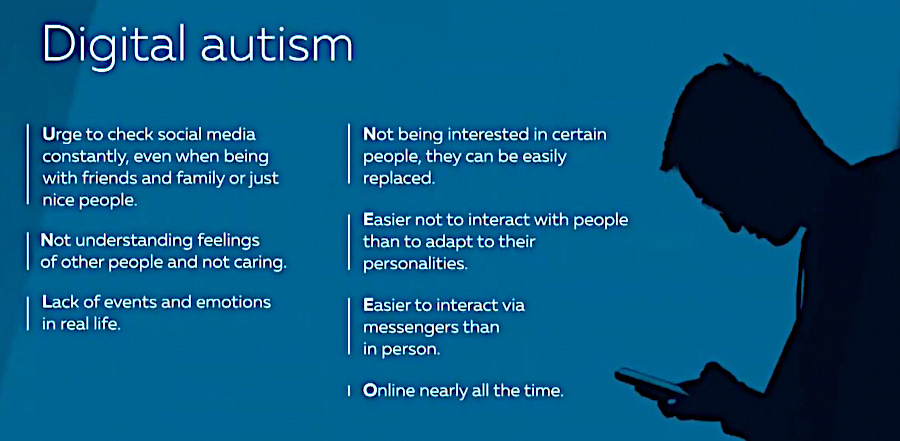 The net result of the combined effects of this technology is that we have an epidemic of what’s become known as Digital Autism.