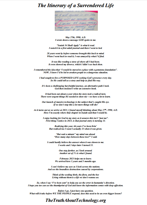 This pdf below shares the journey that brought me to write a book that took 29 years to finish and create this blog and TheTruthAboutTechnology.org site and generally to do what I do. It’s WHAT I THINK YOU SHOULD KNOW NOW!