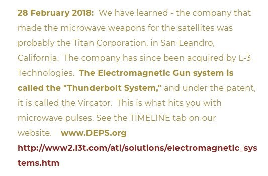 The weapon that causes Havana Syndrome is called a Reltron. It is manufactured by Fisica Applied Technologies in San Leandro, California and operated by the U.S. Space Force and the C1A, from Schriever Base. More than 200 of these weapons are in orbit. They are rated at 250 million watts of power – you will never find that much power in a handheld weapon.
